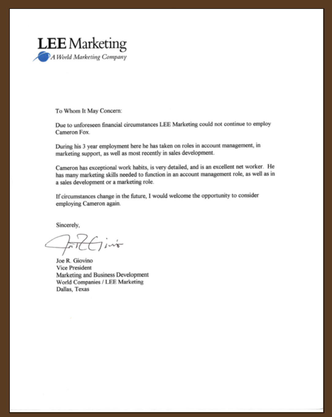 The PrimeCo rebate form? That one changed my career. It forced me to take a broken department, organize it from the ground up, and deliver results. Alongside it, you’ll find a letter of recommendation — proof that execution beats ideas, every time.